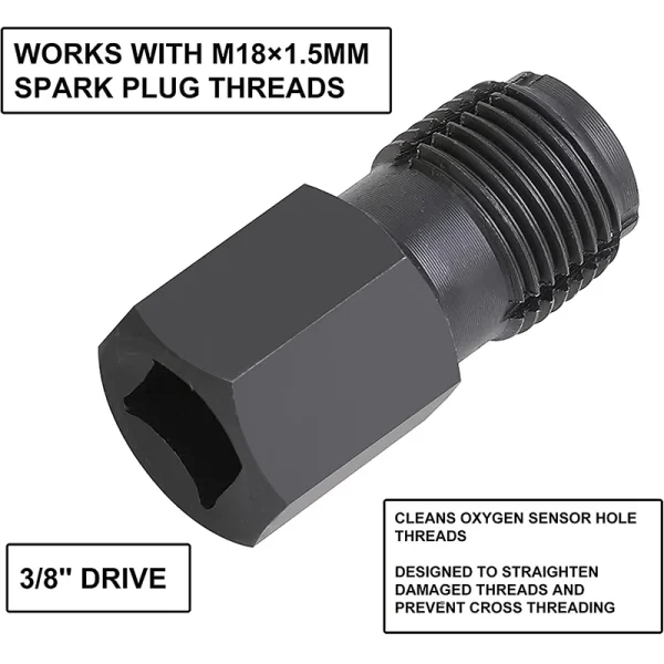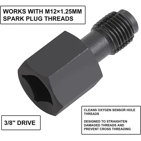 Thread Chasers Included: M12×1.25mm and M18×1.5mm chasers clean and re-thread damaged spark plug holes and sensor ports, reducing cross-threading and restoring proper fit.