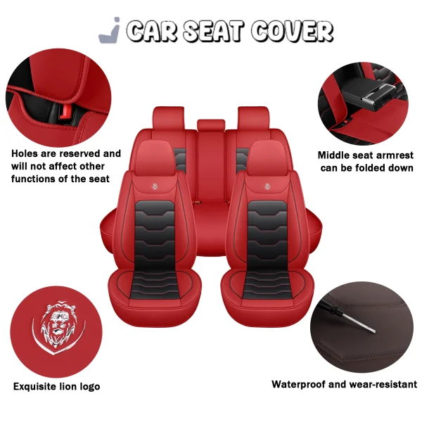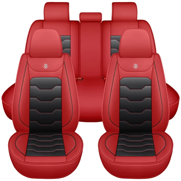Elegant Design: Black leather with red accents adds a sporty yet sophisticated look to your car’s interior.